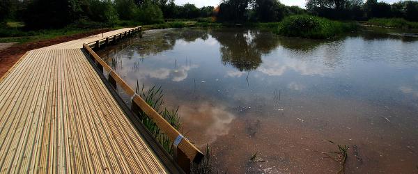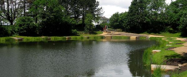 RAWMAT® HDB membrane linings are used extensively in landscaping applications all over the world. This unique system of prehydrated natural sodium bentonite is ideal for providing practical and aesthetic solutions and particularly effective in overcoming difficult ground conditions or meeting arduous design criteria. The sheets of membrane are laid like a carpet across a compacted excavation, the sheets are overlapped simply by peeling back 150mm of geotextile to form a bentonite to bentonite seal at the joints. The membrane is then covered with backfill to compress the bentonite and form a flexible and versatile lining to both formal and informal water features. Applications range from the creation of wetlands and balancing lagoons to water courses, river repairs and re-lining.
